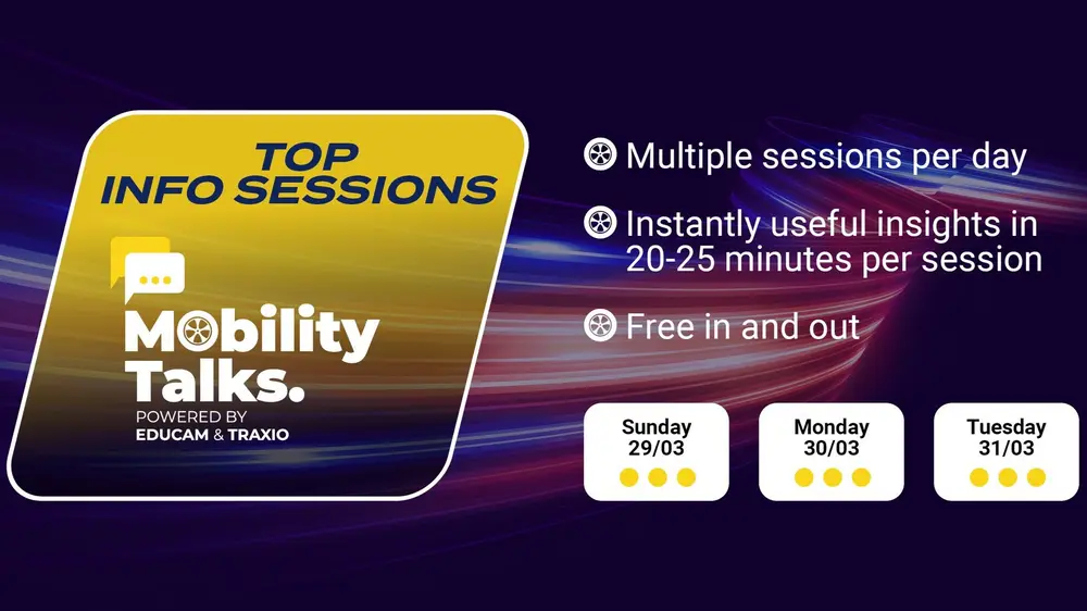 Lors d’AutoTechnica 2026 à Brussels Expo, les Mobility Talks proposeront un programme de sessions courtes consacrées notamment à l’électrification, à Euro 7, aux systèmes ADAS, au recyclage des batteries et à la réglementation.