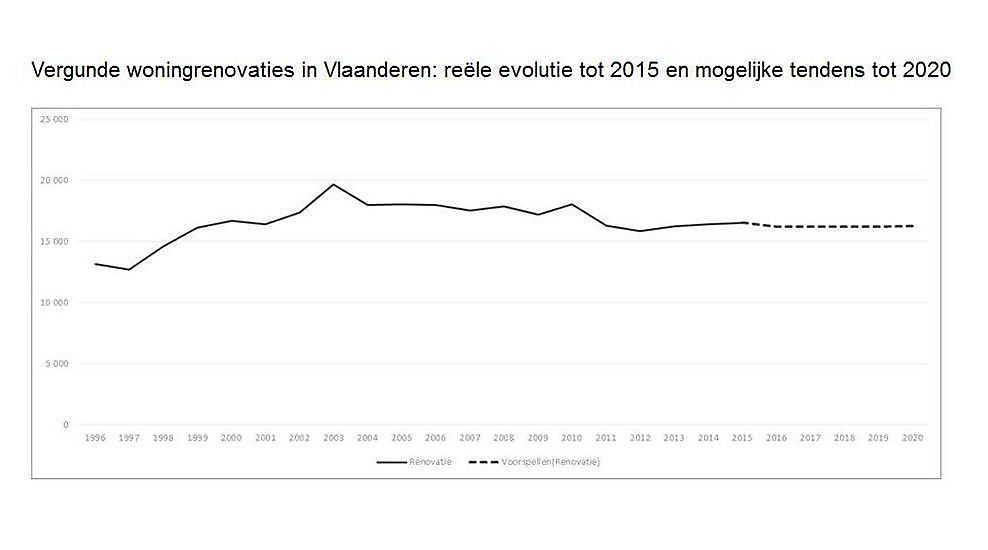 Hoewel het Belgisch Notariaat op de Vlaamse vastgoedmarkt voor 2016 een groot aantal transacties heeft vastgesteld, blijft het aantal grondige renovaties van woningen ter plaatse trappelen. In 2012 piekte het aantal grondige renovaties waarvoor een stedenbouwkundige vergunning vereist is nochtans nog tot ongeveer 20.000, maar de jaren nadien schommelde het cijfer steeds rond 16.000 per jaar. Volgens de Vlaamse Confederatie Bouw (VCB) zullen we er op die manier nooit toe komen dat het Vlaamse woningpatrimonium tegen 2050 volledig gerenoveerd geraakt. Momenteel wordt per jaar namelijk amper 0,7% van het Vlaamse woningpatrimonium grondig gerenoveerd, terwijl jaarlijks 2,5% per jaar nodig is om tegen 2050 een veel energiezuiniger woningpatrimonium te krijgen. Uit eerder onderzoek van de VCB is gebleken dat de overdracht van een woning het sleutelmoment vormt om tot een renovatie over te gaan, al hebben de Vlamingen de lage rente tot nu toe vooral gebruikt om woningen aan te kopen en nog onvoldoende om die te renoveren. Met het hoge aantal transacties in 2016 hoopt de VCB dat nieuwe steunmaatregelen, zoals de renovatiebonus, zullen aanslaan. Tegelijk zijn echter ook nieuwe maatregelen nodig. Met name om het aantal grondige renovaties in oudere appartementen in mede-eigendom te stimuleren is dringend nieuw wetgevend werk vereist.